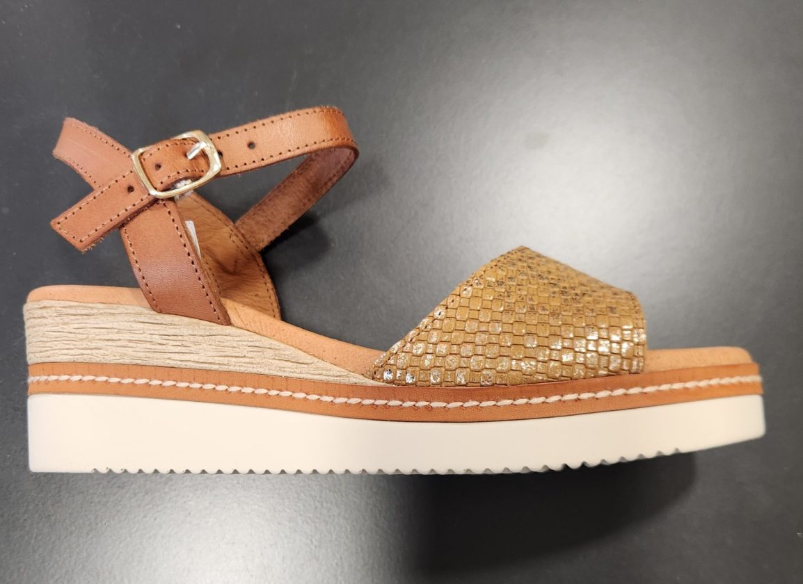 Craquez pour l’allure moderne et lumineuse des sandales EVA FRUTOS en bronze brillant. Ce modèle combine confort, féminité et brillance discrète pour accompagner toutes vos tenues estivales avec style.