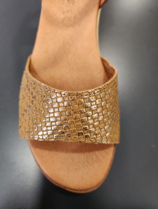 Le coloris bronze brillant ajoute une touche d’éclat chic à votre look. Son effet métallisé capte subtilement la lumière, tout en restant facile à assortir. Une finition parfaite pour mettre en valeur vos pieds avec élégance, de jour comme de nuit.