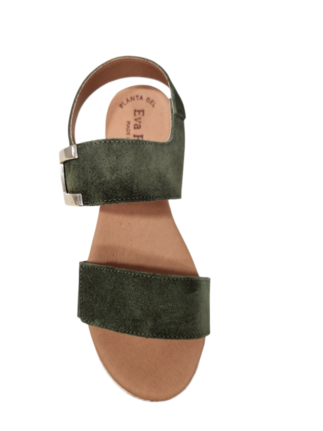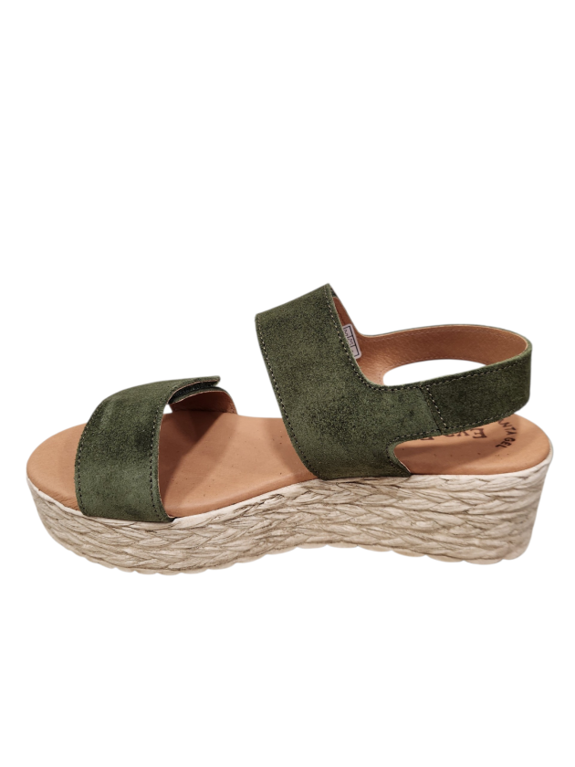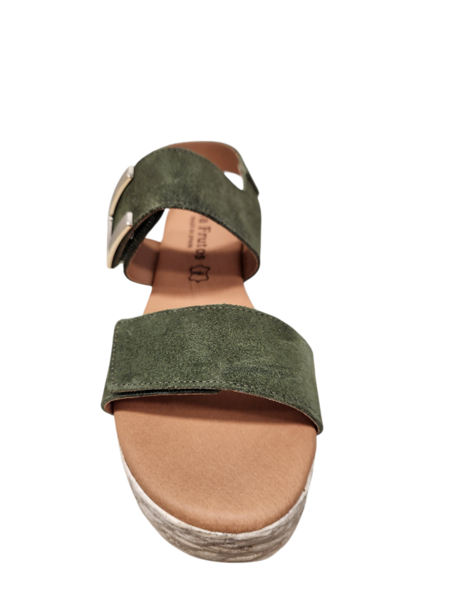 Sandales compensées en cuir nubuck vert – Semelle Plantagel en cuir