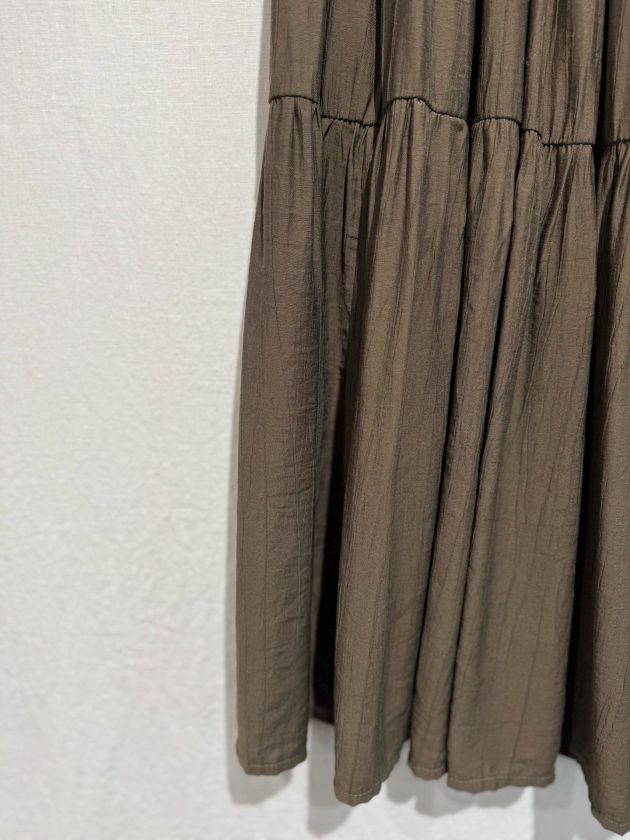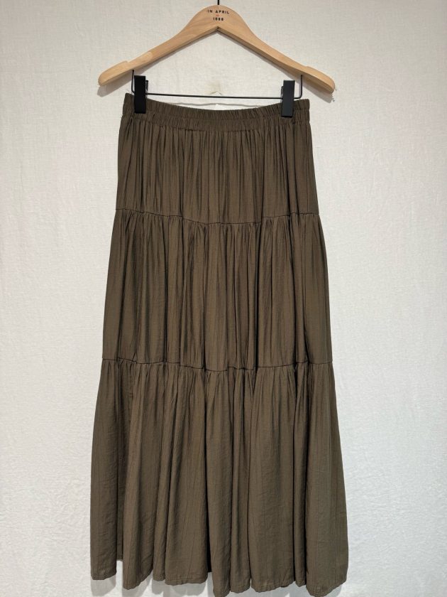 Découvrez notre jupe longue à volants dans son coloris kaki profond, une nuance organique et sophistiquée qui s’adapte à toutes les saisons. Véritable pièce maîtresse, elle incarne un style « effortless » (chic sans effort) qui sublime instantanément votre silhouette.